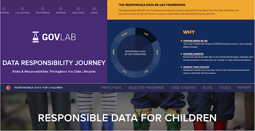 When we talk about responsible data, we mean developing the processes needed to access and effectively use data in a way that mitigates dangers to data subjects, data users, and others, while preventing missed uses of the data for solving public problems. This line of work seeks to identify and mitigate risks, establish trust, and maximize the value of work so that public agencies, civil society organizations, large and small businesses, and others can achieve their goals in ways that do not contribute to the misuse (or missed use) of data.